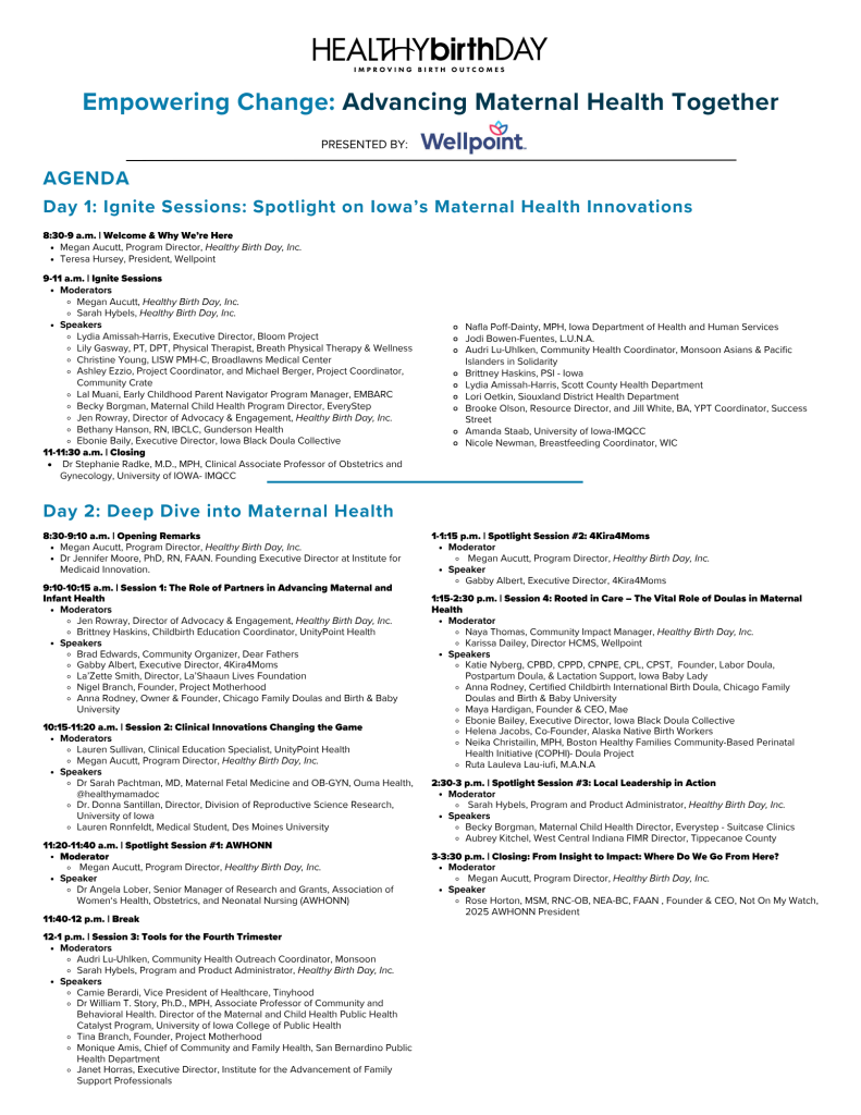 Contact UsThe “Empowering Change: Advancing Maternal Health Together” event, presented by Wellpoint, will bring together leading experts, advocates and organizations to highlight maternal health best practices, address critical challenges in prenatal care, and share actionable solutions.