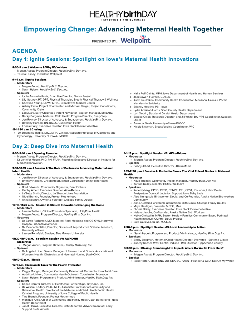 Contact UsThe “Empowering Change: Advancing Maternal Health Together” event, presented by Wellpoint, will bring together leading experts, advocates and organizations to highlight maternal health best practices, address critical challenges in prenatal care, and share actionable solutions.